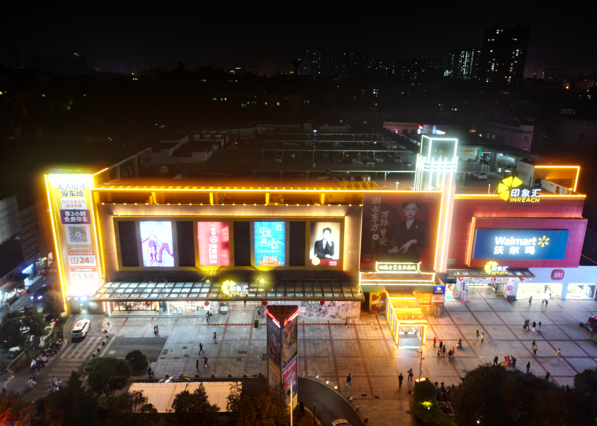 益陽(yáng)印象匯坐落于赫山區(qū)桃花侖西路 555 號(hào),作為印力集團(tuán)布局湘中的重要商業(yè)載體,這里匯聚了沃爾瑪、海底撈、茶顏悅色等數(shù)十家知名品牌,既是赫山區(qū)商超人氣榜的榜首???,也是承載市民日常消費(fèi)與社交休閑的核心空間。然而,隨著城市夜景美學(xué)的升級(jí)與夜間經(jīng)濟(jì)的發(fā)展,原有外墻燈光逐漸顯現(xiàn)出亮度不均、風(fēng)格單一、能耗偏高的問題,與商圈日益增長(zhǎng)的品質(zhì)需求形成反差。