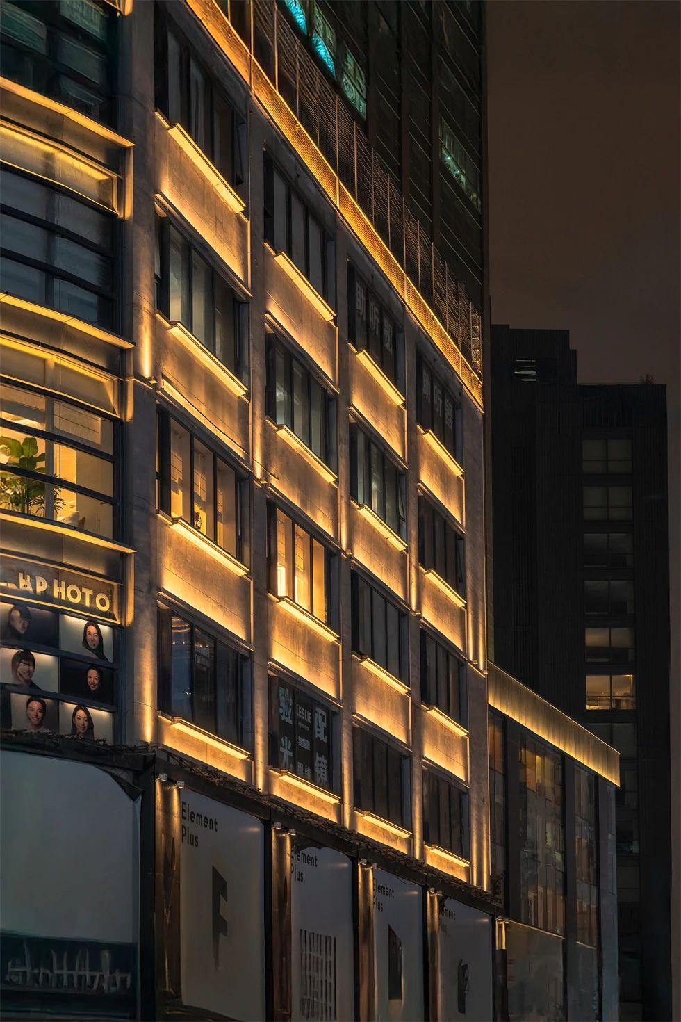 五月花商務中心的燈光改造以“融入與點亮”為核心理念。通過精準的立面投光技術(shù),建筑的結(jié)構(gòu)肌理被清晰勾勒,冷白色調(diào)燈光與周邊歷史建筑的暖光形成巧妙對比,既保持了商業(yè)街區(qū)的整體協(xié)調(diào)性,又彰顯了現(xiàn)代建筑的簡約與活力。